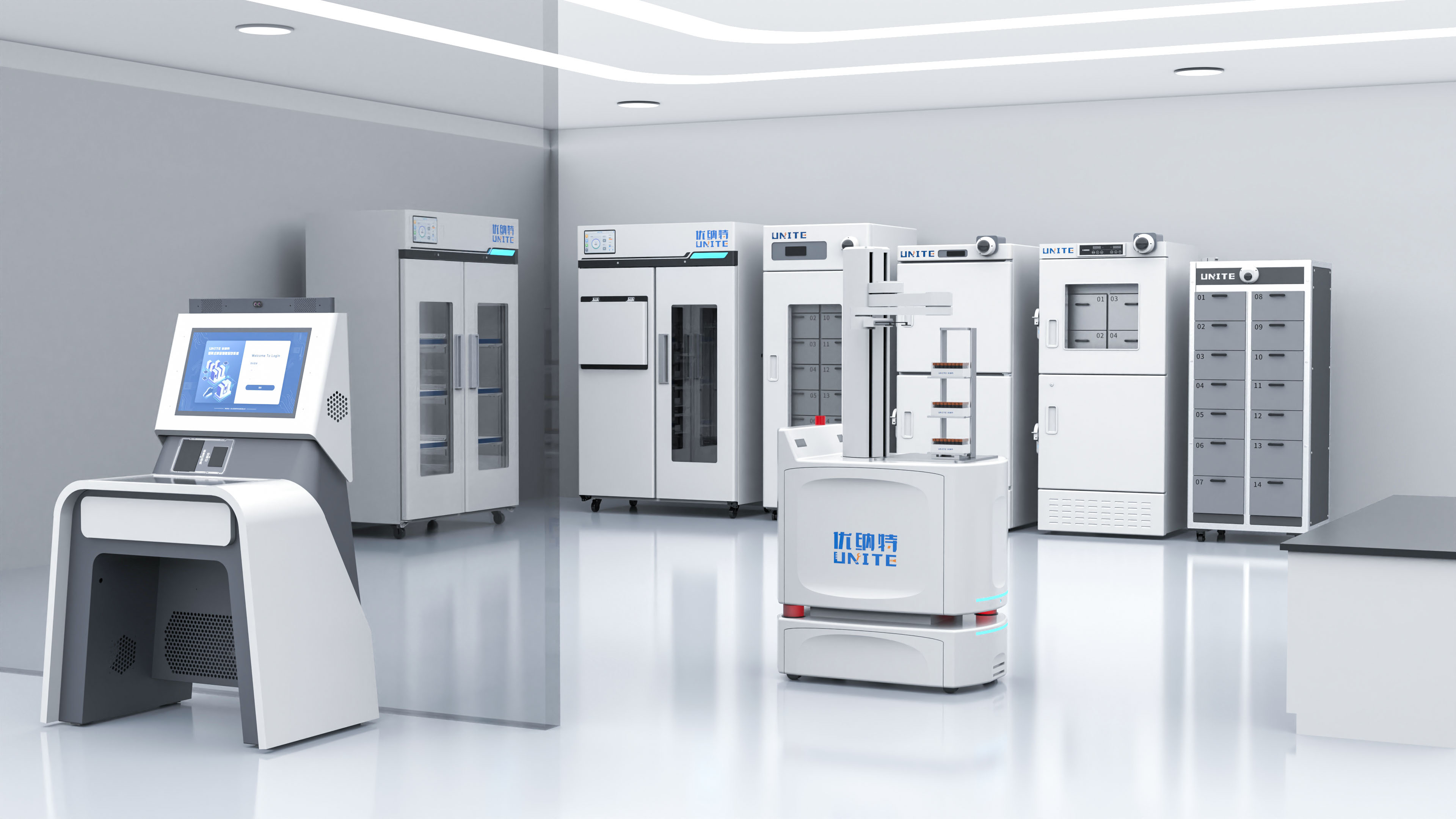 浙江優納特自主創新研發矩陣式物聯儲存艙,涵蓋試劑危化品、標準品/標準菌、生物樣本、數字孿生數據、自動化無人實驗室、智慧實驗室安全、環境監測、儀器設備等八大平臺。主營硬件包括:智能試劑安全柜,智能危化品柜,智能試劑柜,危化品安全柜,防爆安全柜,智能易制毒安全柜,智能防火安全柜,智能防爆安全柜,試劑冷藏柜,無人實驗室自動化設備,自動化機器人,自動化轉運機器人,機器臂,智慧無人實驗室,全自動生物樣本庫,標準品常溫柜,標準品冷藏柜,標準品雙控溫柜,智慧實驗室管理系統,實驗室信息管理系統,實驗室物資管理系統,實驗室安全教育系統,無人實驗室智慧化管理。通過軟硬件結合,為實驗室物資提供物理安全防護的同時掌握物資存取、定位、統計等全生命周期動態。
